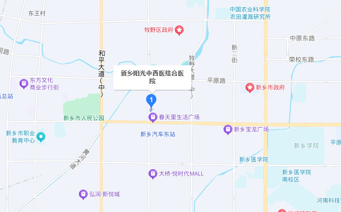 公交路線: (1)乘坐38路、7路、67路到紅旗分局站下車;乘坐35路、38路、25路到汽車東站(方便站)站下車; (2)乘坐23路到豐華街金穗大道站下車,步行至新鄉(xiāng)陽光中西醫(yī)結(jié)合醫(yī)院